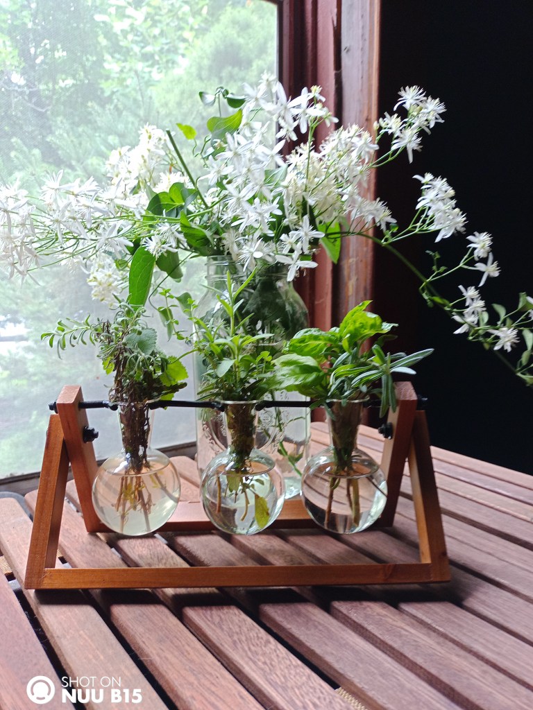 All year I let the vines on the fence line grow Wyld. Then when the very first hints of autumn arrive I awake to nature’s sweet sweet scents. White Clematis the “Queen of Vines” displays her glory. Once you smell her wonder gift you can’t help but let her grow Wyld & free just like me. Untamable, she tries to creep into the garden & cover every crack & crevice & I keep asking her to please stay on the fence 😅 she tries her best but like I said untamable, I’m noticing a couple slight varieties this yr. I have a verigated leaf & a solid green leaf. I’m going to bring one or two of her babies inside tho join me this winter as a house plant.